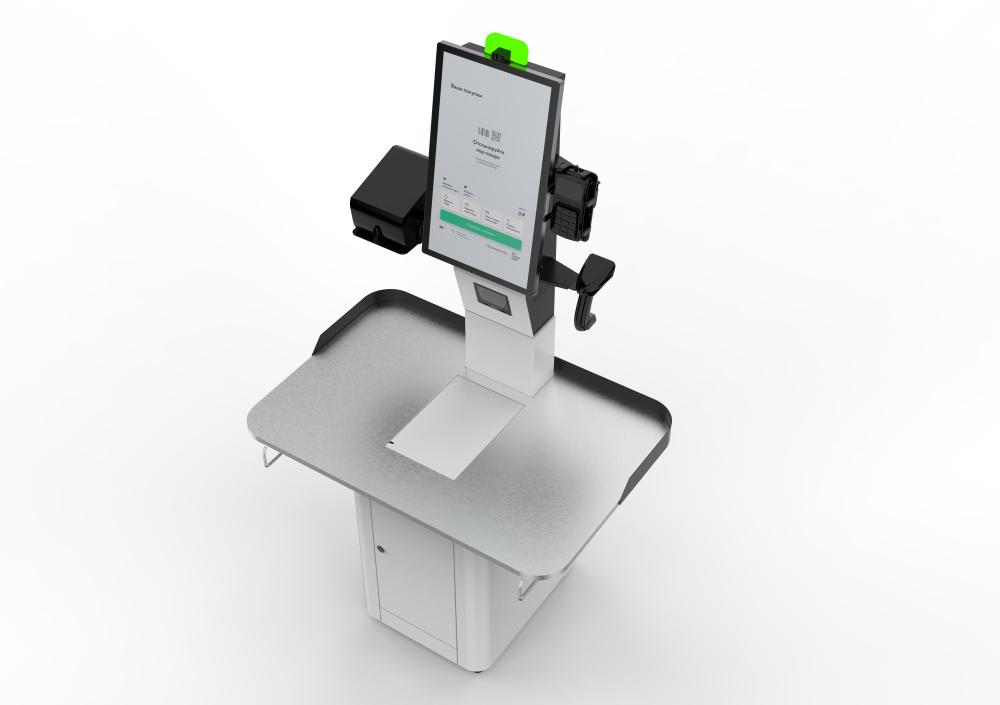POScenter SCO-М210 разработана для форматов супермаркет и гипермаркет, удобной тумбой со столешницей шириной 110 см, с повышенным требованием к объему «корзины» покупателя.